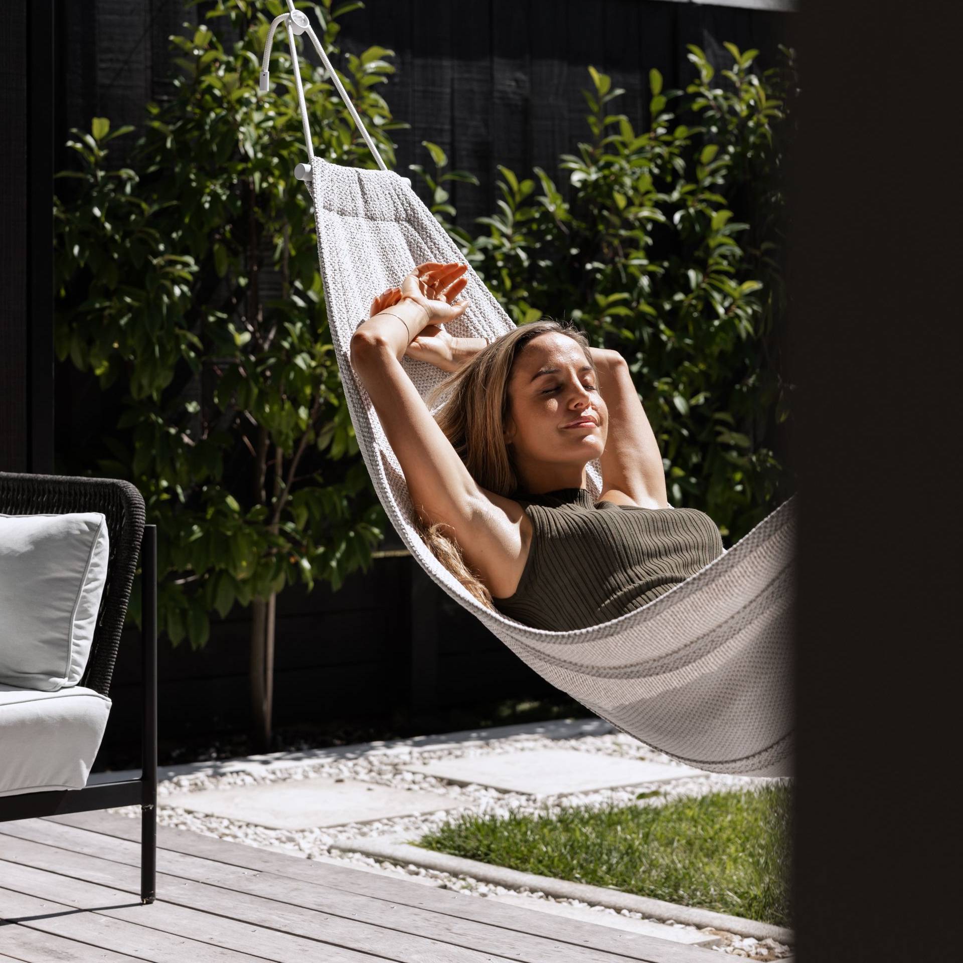 With a minimal, laidback aesthetic this modern hammock effortlessly oozes relaxation.